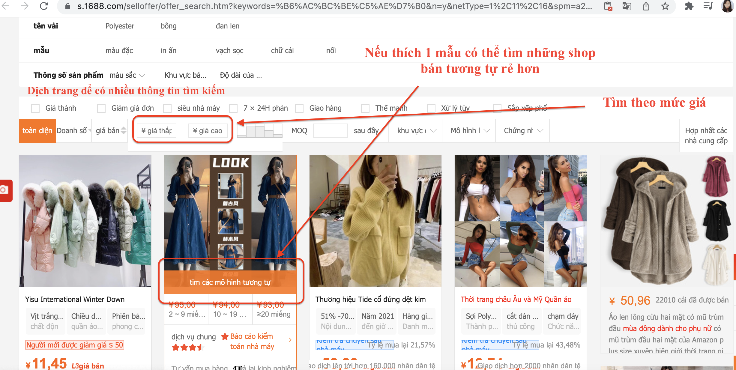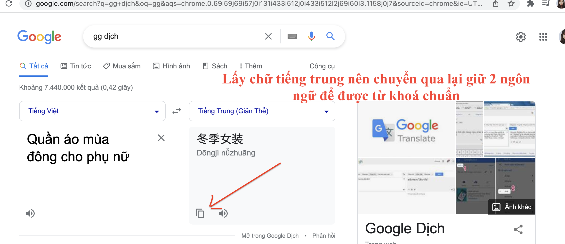 C. Bước 3 : Tiến hành tìm kiếm hàng bằng hình ảnh hoặc từ khoá tiếng trung / tên mẫu mã model qua phiên dịch từ Google dịch