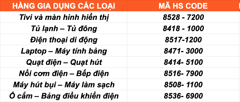 Mã HS và thuế phí đối với hàng gia dụng nhập khẩu