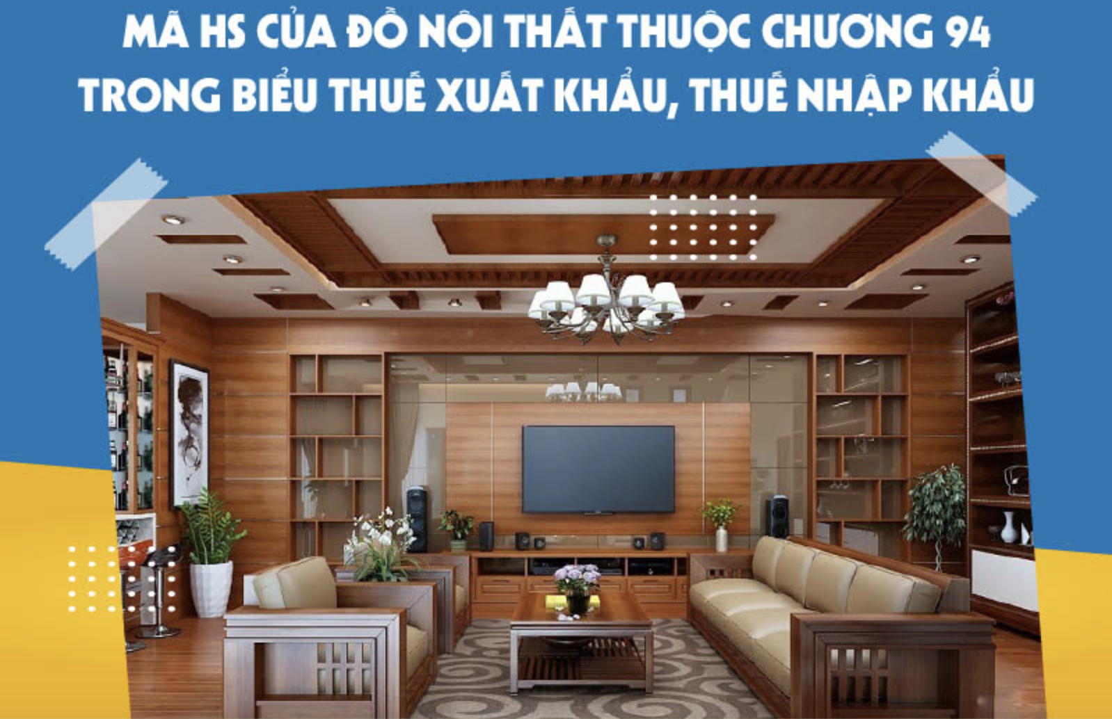 Mặt hàng nội thất thuộc chương 94: Đồ nội thất; Bộ đồ giường, đệm, khung đệm, nệm và các đồ dùng nhồi tương tự; Đèn và bộ đèn, chưa được chi tiết hoặc ghi ở nơi khác; Biển hiệu được chiếu sáng, biển đề tên được chiếu sáng và các loại tương tự; Nhà lắp ghép.